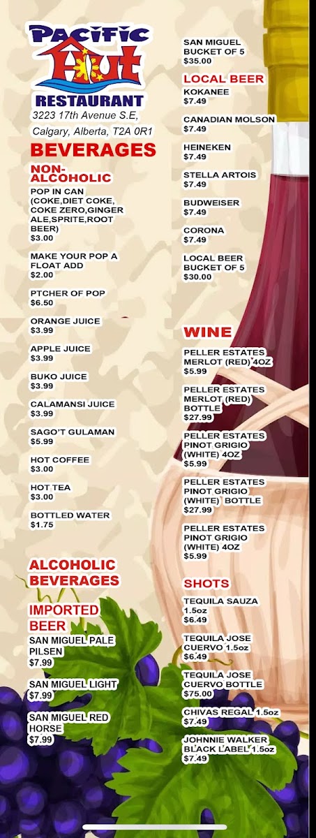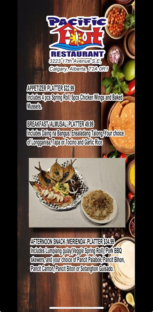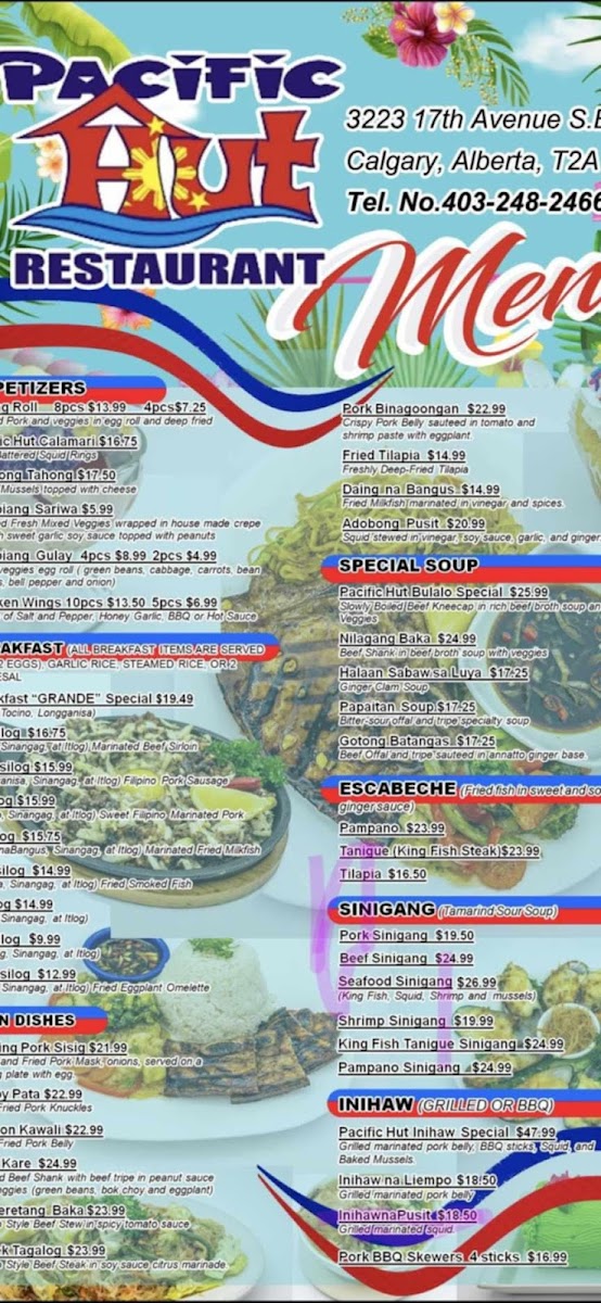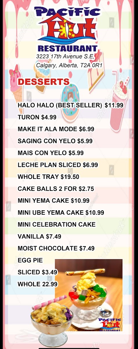 Pacific Hut Restaurants and Bakeshop Menu