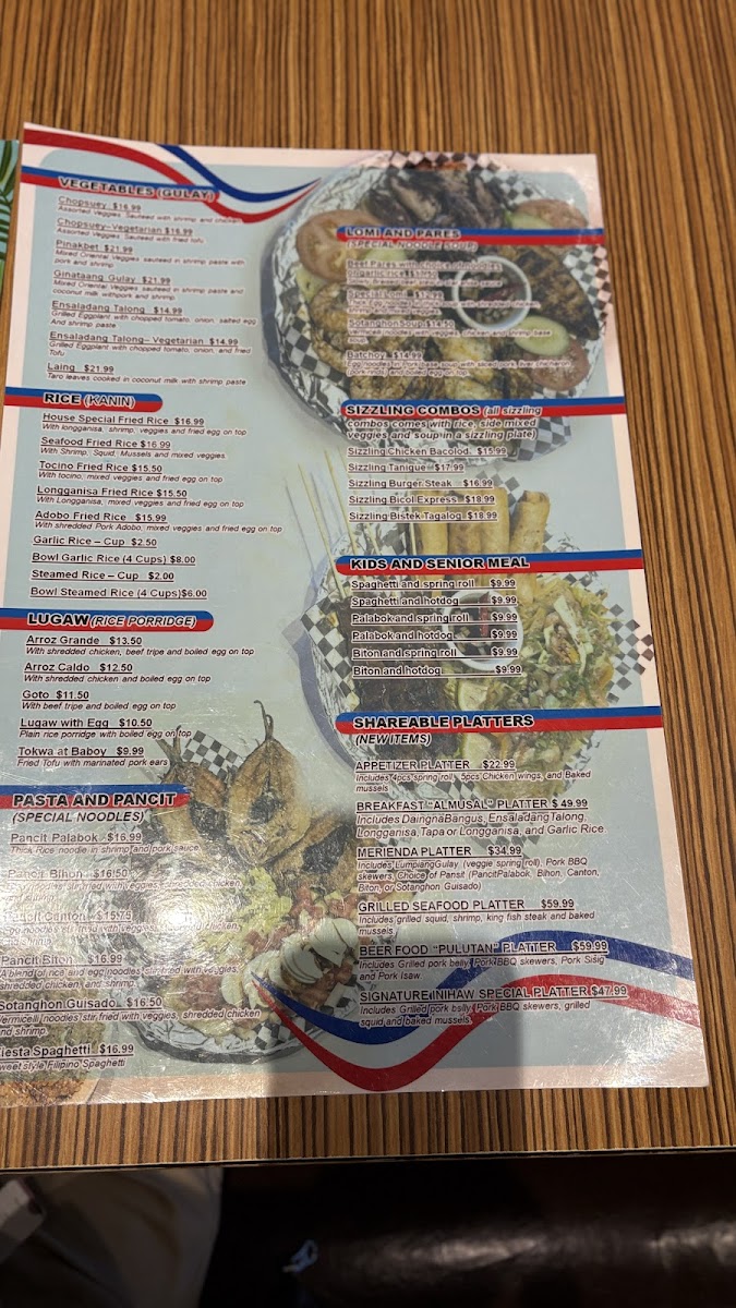 This menu caters to guests seeking authentic Filipino cuisine with options suitable for breakfast, lunch, and light meals throughout the day. The preparation and serving style accommodate both dine-in and takeout preferences.